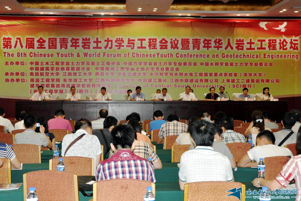 启航网讯 7月20日至21日,第八届全国青年岩土力学与工程会议暨青年华人岩土工程论坛在省委滨江宾馆隆重召开。中国工程院龚晓南院士、中国土木工程学会土力学及岩土工程分会理事长张建民教授、南昌航空大学校长余欢教授及省内兄弟院校领导、国内外知名专家学者出席了开幕式。大会由中国土木工程学会土力学及岩土工程分会、中国力学学会岩土力学专业委员会、中国水利学会岩土力学专业委员会、中国建筑学会地基基础分会和中国振动工程学会土动力学专业委员会等5个学会共同主办,由南昌航空大学、江西理工大学、南昌大学、华东交通大学、水沙科学与水利水电工程国家重点实验室(清华大学)等单位承办,南昌工程学院、东华理工大学、江西科技师范大学、南昌建工集团、江西中联建设集团有限公司、上海建工二建集团有限公司、建华管桩集团南昌建华管桩有限公司、《Journal of Central South University》(SCI期刊)、《岩土工程学报》(EI期刊)和《武汉大学出版社》等单位协办,来自海内外岩土学科青年学者两百人余人参加了本次会议。