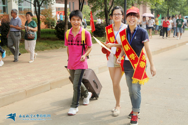 校园内的志愿者忙着热火朝天,校园外的志愿者也没有空闲下来。在南昌火车站站口,有一群身穿中国海军制服的学长们,一直在站口忙着迎接学生,他们便是国防生教育学院的国防生。学校因为考虑到新生和家长不知如何来到校园。13日起便在在火车站安排了国防生教育学院的学生以及各学院志愿者,定点负责迎接来自各个地方的新生和家长。一位2013级艺术与设计学院的新生朱泽佳说,她是13日早上七点到达火车站的,没过一会,就有三个学长带她和几个新生坐上了开往学校的车,省去了自己坐车的麻烦。到了学校后,就有贴心的教官带着她去住宿。下午,就去体训馆进行报到。整个过程都有学长学姐全程陪伴,基本不用自己去操心,感觉十分贴心和温暖。