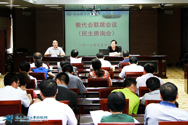 学校召开教代会联席会暨民主质询会。(摄影 罗晖)