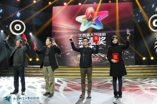 启航网讯 12月19日晚,2013年江西省人民政府动漫奖颁奖仪式在省广播电视台600㎡演播大厅隆重举行,这也是江西首次为动漫产业颁发政府奖项,副省长朱虹出席并为获奖代表颁奖。在此次大赛中,南昌航空大学共获得四项大奖,分别为:南昌航空大学获“优秀动漫教育机构”奖、艺术与设计学院学生管永铭的创作作品《迷失的季节》获“优秀漫画作品一等奖”、艺术与设计学院教师李洁的出版教材《影视动画分镜头设计》获“优秀动漫出版物三等奖”、艺术与设计学院宋军教授获得“优秀动漫创作者荣誉”。