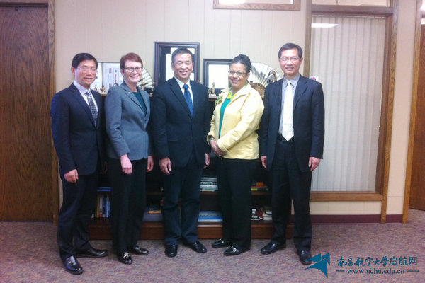 在北大科他州立大学(NDSU),代表团先后与该校Evie Myers副校长、国际项目办主任、研究生院院长及工程与建筑学院院长进行了正式会谈,就如何进一步加强和深化现有项目的合作,研究生培养、暑期短期师资培训以及教育部批准我校与NDSU的人文交流项目等进行了深入交流和沟通,双方一致同意大力推进两校的合作。会谈后,代表团参观了NDSU纳米技术研究中心,刘卫东到NDSU的人力资源部调研美国大学教师队伍构成与薪酬管理、临时岗位设置与管理等问题。