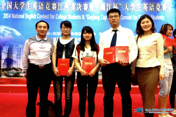 启航网讯 5月11日至12日,2014年全国大学生英语竞赛江西省决赛暨“赣江杯”大学生英语竞赛在江西财经大学举行。来自江西省50余所高校的1000名学生参加比赛,竞争十分激烈。我校由外国语学院徐翰和贺菁老师带队指导, 共有37名学生入围此次决赛。经过两天的激烈角逐,我校学子取得了佳绩,何杨同学一人获得一等奖2项,此外我校还获得二等奖2项,三等奖23项,在省内排名前列。