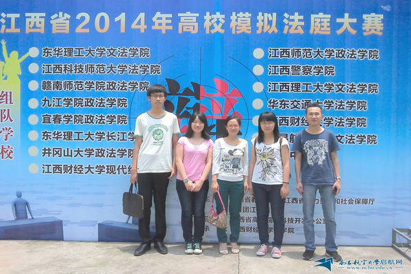 启航网讯 5月30日-6月1日,2014年江西省大学生科技创新与职业技能竞赛(江西省首届大学生模拟法庭大赛项目)在江西财经大学举行。我校文法学院陈思琴、任蓉两位老师指导的,由111421班王菁、孛倩如、肖征元和121421班马昊轩组成的模拟法庭团队参加了该次大赛,荣获本次大赛优秀书状一等奖、优秀辩手三等奖和团体总分三等奖。