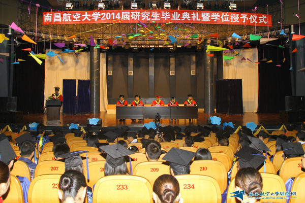 启航网讯 6月20日上午,南昌航空大学2014届研究生毕业典礼暨学位授予仪式在音乐厅隆重举行。校领导余欢、王玉芝、罗胜联、唐星华、刘卫东出席大会,各学院相关负责人、导师代表,2014届毕业研究生及部分毕业生亲友参加了典礼,共同见证了昌航学子学业圆满完成,即将走向未来这一充满喜悦和希望的神圣时刻。仪式由副校长罗胜联主持。