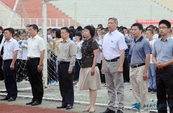 启航网讯 9月30日晨,鲜艳的五星红旗在前湖湖畔升起,气势磅礴的《正气歌》、《我的祖国》的旋律在南昌航空大学上空回响。在全国首个“烈士纪念日”这天,在新中国65华诞即将来临之际,南昌航空大学5000余名师生在田径场参加升国旗仪式、集体诵读爱国主义诗文,以此来缅怀烈士功绩,弘扬烈士精神,祝福祖国的美好明天。校领导王玉芝、罗胜联、刘卫东、聂威等出席仪式。各相关职能部门负责人以及各学院党委副书记、辅导员参加了活动。