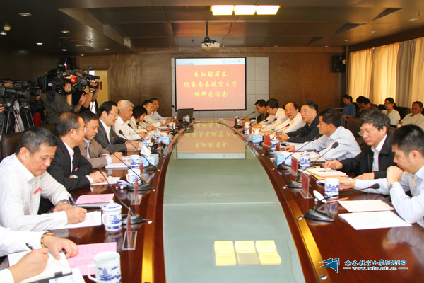 上午10时许,朱虹在办公大楼第一会议室听取了学校工作汇报。校长余欢从学校基本办学情况、近期主要工作情况及发展中面临的问题等三个方面简要进行了情况介绍。近年来,学校通过“不断优化专业结构、突出航空国防中心地位,不断加大投入力度、优先保证航空国防学科建设,不断加强科学研究、提高服务航空国防能力,不断完善人才培养模式、提高航空国防人才培养质量”等方式,努力强化航空国防特色;通过“积极推进工程训练中心建设、发挥国家级实训教学中心示范引领作用,积极推进创新创业教育、提高学生创新创业能力,强化实践教学基地建设、构建‘四位一体’实践教学体系,大力实施‘卓越工程师’计划和校企联合办班、推进应用型人才培养模式创新”等方式,进一步推进实践教育。我校始终坚持突出产学研用相结合的发展理念,突出为江西经济发展培养人才,注重加强宏观研究、服务政府决策咨询,注重解决突出问题、服务鄱阳湖生态经济区建设,不断强化为江西经济发展服务的能力。同时,学校通过“以优化顶层设计为抓手、推进现代大学制度建设,以人事分配制度改革为牵引、推进人才队伍建设,以学分制改革为突破、推进本科教育教学改革,以激励创新为导向、推进科研管理改革,以加强党建为切入、推进学校民主管理进程,以实施民生工程为依托、提升教职工幸福指数”等举措,大力加强内部管理,学校各项事业不断向前推进和发展。汇报中,学校还提出了发展中面临的问题,如申博与办学层次提升、江西通航研究院的组建、财政收入与办学条件改善等,希望省委省政府给予支持和帮助。