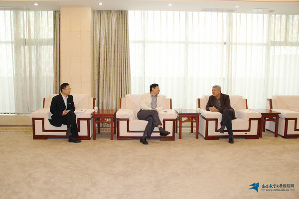报告会之前,校长余欢与谢凤根进行了交流和座谈。
