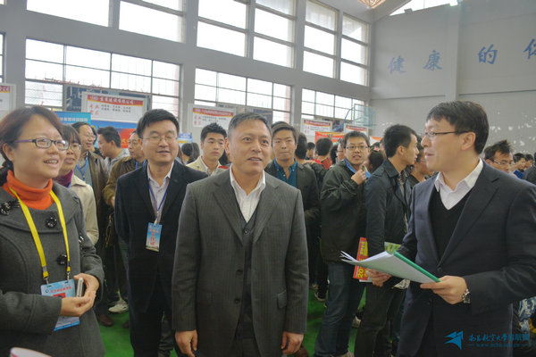 我校2015届毕业生秋季“双选会”在校体训馆成功举办,副校长黎明来到现场指导就业工作。