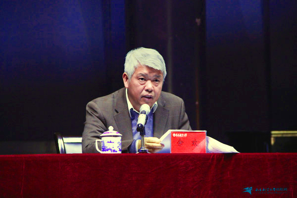 余欢就《南昌航空大学章程(草案)》修订情况作了说明。(摄影 张春晨)
