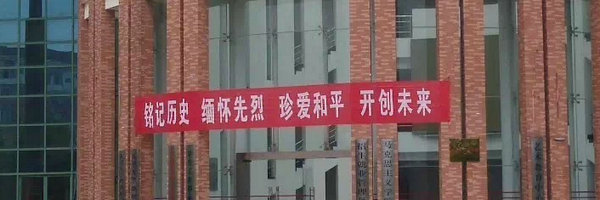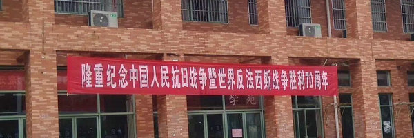 学校在校园内悬挂的纪念抗战胜利宣传横幅