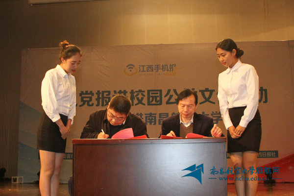 校党委副书记黄士安代表学校与江西手机报签署推进“手机党报进校园”战略合作书