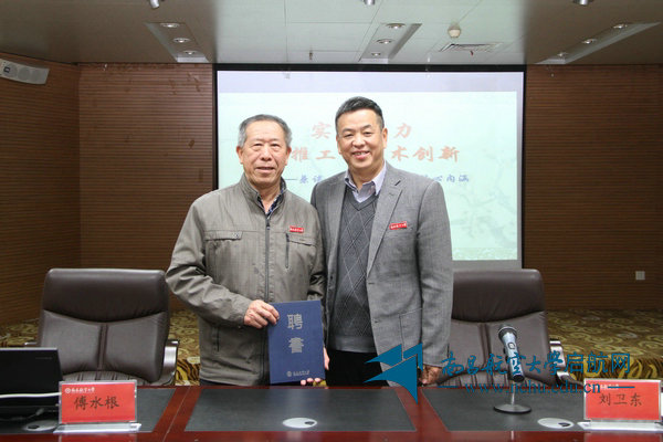 刘卫东为傅水根教授颁发南昌航空大学兼职教授聘书