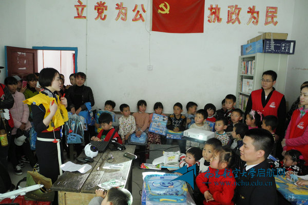 3月5日当天,我校青年志愿者携手东航江西分公司志愿者共同走进武宁船滩镇梅溪村开展了“牵手山区娃,共筑蓝天梦”的爱心活动。在“蓝天课堂”上,志愿者们为山区师生群众开设了一次别开生动的航空知识课,讲解航空知识、普及航空文化。我校飞行器学院大学生航模队则以精彩的航模表演赢得了热烈掌声与欢呼。活动最后,志愿者们还为山区的贫困学子捐献了课本、书包等学习用品,鼓励孩子们树立远大理想,勤奋学习,飞向更广阔的天地。