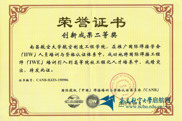 学院荣获国际授权焊接培训与资格认证委员会颁发的创新成果奖