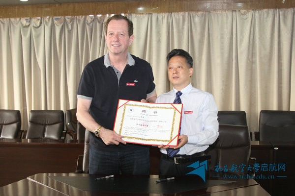 聘任仪式开始前,罗胜联对John C.Crittenden教授受聘我校讲座教授表示热烈的欢迎,衷心祝JohnC.Crittenden教授能将昌航视为自己的家,工作更加顺畅,生活更加愉快,并希望借此能够提升南昌航空大学与美国佐治亚理工学院的深度合作与交流。