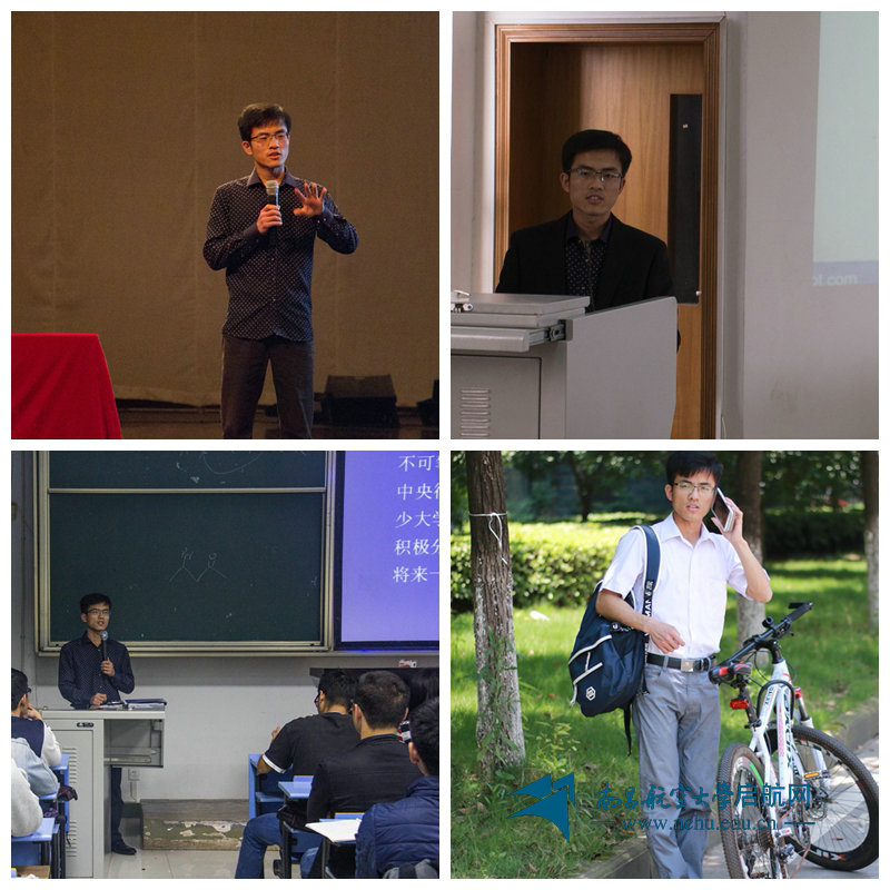 在昌航校园里,经常能见到一名精干的小伙子,常常跟学生谈“担当精神”,他骑着单车,背着大书包在校园里穿行,还时常被误认为是学生。我们问他有车为什么不开,小伙子倒是吟起打油诗来“开车麻烦不环保,走路太慢耽误事,工作繁杂材料多,背包骑车正适合”。精干的小伙子正是谢大进,2015年1月重新回到辅导员岗位上,成为航空制造工程学院2014级机制专业学生辅导员,并兼任学院组织员。2015年度学校优秀辅导员,2016年学校优秀党务工作者。