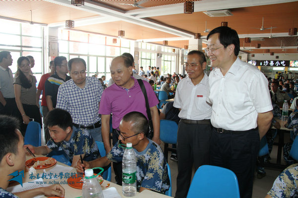 座谈会后,督导组一行在党委书记傅克刚,副校长唐星华、刘卫东、聂威的陪同下,分别来到B栋教学楼、一食堂、14栋学生公寓(外国留学生宿舍)进行实地查看,检查教学设施运行、学生住宿、食堂食品安全和校园安全保卫情况,对我校相关工作给予了肯定,并就其提高提出了很好的意见和建议。