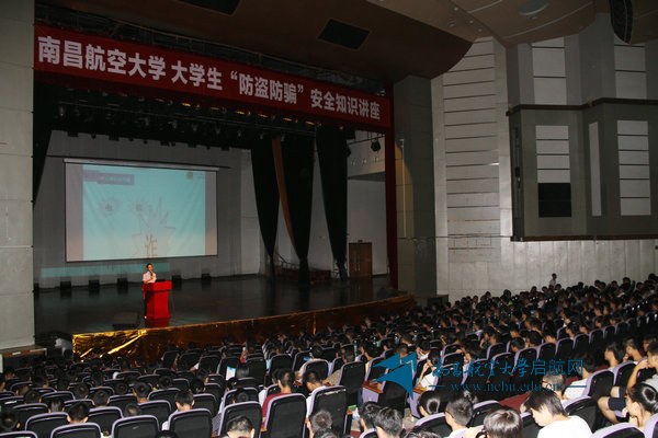 启航网讯 为进一步提高学生安全防范意识和能力,预防和减少校园可防性案件的发生,深入推进平安校园建设,9月12日下午,南昌市公安局红谷滩分局和红角洲派出所“防盗防骗”宣讲团一行6人应邀来校宣讲。我校学工处和保卫处全体人员,各学院党委副书记、学工办主任和全体辅导员,学生代表近1000人在大学生活动中心礼堂聆听了精彩的讲座。