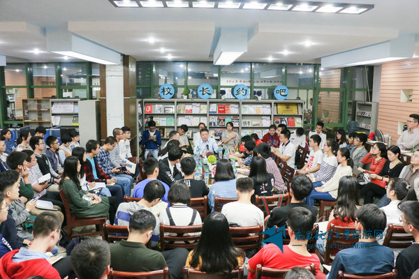 10月19日晚,校长罗胜联、副校长何兴道来到大学生活动中心“学生成长之家”,和应约而来的百余名学生畅聊学校办学治校、发展兴校。现场同学踊跃发言,掌声不断。