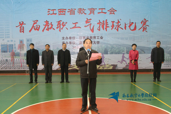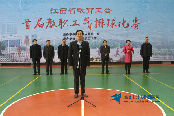 饶剑明在致辞中对南昌航空大学及全体工作人员承办此项赛事表示了衷心感谢。他指出,近年来省教育工会广泛开展教职工喜闻乐见的活动,增强了工会组织的吸引力和凝聚力,促进了教职工身心健康和整体队伍素质的提升,为全省教育改革发展做出了应有的贡献。