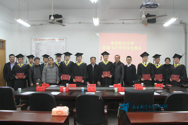 启航网讯 1月11日,学校首届飞行技术专业学生毕业典礼在飞行器工程学院会议室隆重举行。副校长周世健,上海吉祥航空有限公司招飞办负责人,学校教务处、飞行器工程学院有关负责人,飞行技术专业全体毕业生参加了毕业典礼。