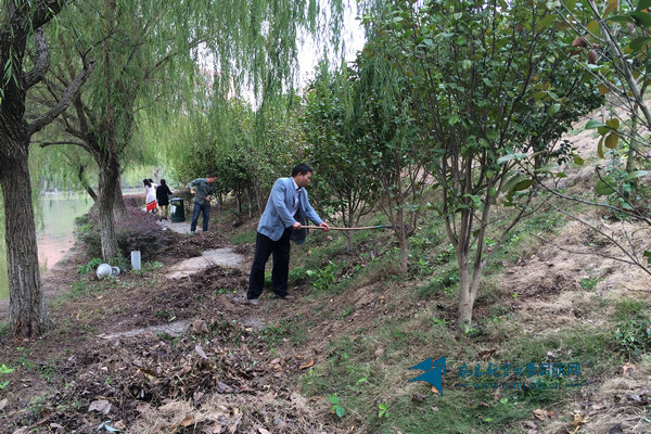 物业中心员工清理校园垃圾