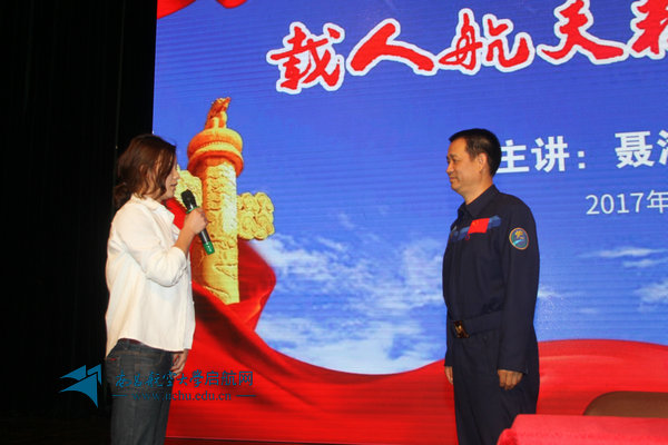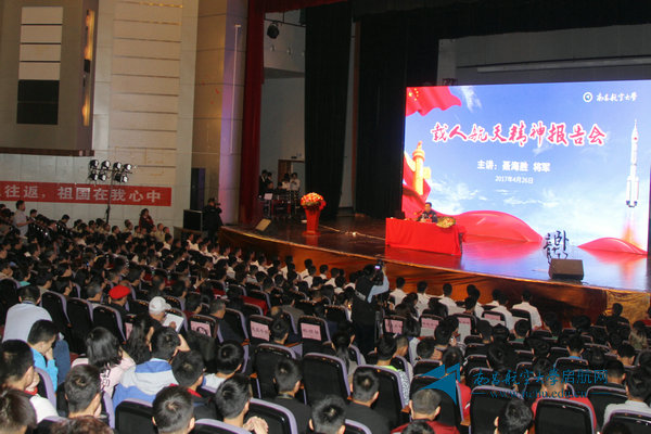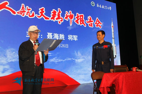 启航网讯 今日的昌航校园,繁华似锦;大学生活动中心会场,掌声雷动。4月26日,英雄航天员、中国人民解放军航天员大队大队长、少将聂海胜来到我校举行“载人航天精神报告会”,与千余名昌航师生畅谈“航天梦”。报告会由党委书记郭杰忠主持,原省政府副省长、南昌航空工业学院院长黄懋衡,全体校领导、海军驻校后备军官选培办主任、全体副处以上领导干部及学生代表参会。