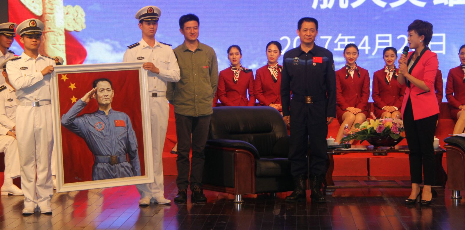 艺术与设计学院教师汤耀华向聂海胜赠送肖像油画