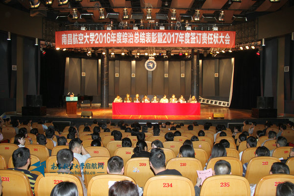启航网讯 4月28日,学校在音乐厅召开2016年度综治工作总结表彰暨2017年度综治责任状签状大会。全体在家校领导、全校副处以上干部(含科研平台负责人)、机关科级以上干部、各单位综治专(兼)干、全体学生辅导员近300人参加了会议。会议由副校长熊震宇主持。