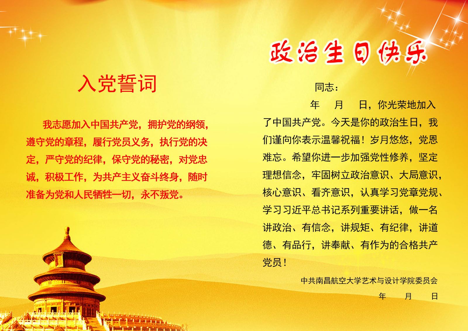 启航网讯 近日,艺术与设计学院党委在全院党员中启动党员政治生日活动。活动自2017年5月1 日起开始实施,旨在教育引导党员牢固树立党员意识,珍惜党员荣誉,加强党性修养,牢记党的宗旨,勿忘入党初心,充分发挥党员先锋模范作用,籍之推进“两学一做”学习教育常态化制度化。