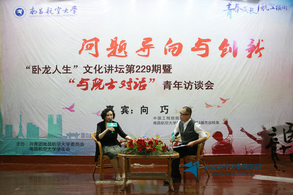 启航网讯 6月12日,受母校邀请,南昌航空大学83届杰出校友、名誉校长、中国工程院院士向巧做客“卧龙人生”文化讲坛暨“与院士对话”青年访谈会,带来了一场以《问题导向与创新》为主题的专题报告。校党委书记郭杰忠,校友办、团委等部门负责人师生代表400余人听取了报告及访谈会。