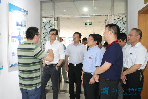 启航网讯 7月15日,南昌市政府副市长杨文斌、南昌市高新区管委会主任刘德辉率企业代表团来校访问。学校党委书记郭杰忠、副校长唐星华亲切会见了来宾一行,并带领客人参观环境与化学工程学院环鄱阳湖流域污染物控制与资源化协同创新中心,飞行器工程学院机库、飞行模拟仓、风洞实验室等教学科研平台。