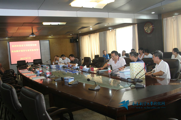 启航网讯 7月27日,省文明办、省委教育工委组成的省文明校园评估验收组来校,就我校申报江西省文明校园(高校)进行现场督查评估。学校在办公大楼20楼会议室召开评估汇报会。党委书记郭杰忠、党委副书记黄士安亲切会见评估组。学校各相关部门负责人,以及师生代表30人参加了评估会。
