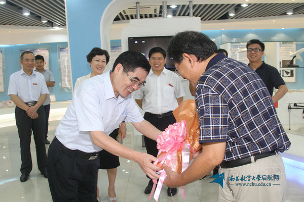 在国防楼科技成果展厅,汤建人看望了中科院“百人计划”人选、我校材料科学与工程学院彭晓教授,全国“青年红色筑梦之旅”新锐创意奖“天宫开悟”项目指导教师、测试与光电工程学院王庆老师,送上了鲜花和节日礼物,并通过他们向全校教职员工送上真挚的节日祝福。汤建人动情地说,教师是太阳底下最崇高的职业!你们在学生心里播下希望和梦想的种子,付出了辛勤的汗水,也收获了“桃李芬芳”的快乐;希望昌航教师积极发挥学校专业特色,大力培养学生创新思维、锤炼学生敢于实践的精神,在“大众创业、万众创新”的巨浪之中,奋楫扬帆、勇立潮头。