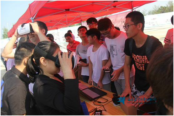 参加活动的家长和学生体验“天宫开悟”VR项目