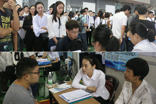 启航网讯 9月20日,2018届毕业生航空工业专场招聘会在体训馆举办。来自中国航空工业集团下属单位及相关企事业单位近60家参加了招聘会,提供就业岗位近千个,涉及材料类、机械类、飞行器类、电子类、工程类、管理类等专业。