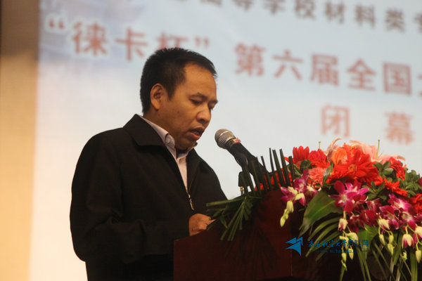 副校长周世健致辞。他代表承办单位向全国各高校的指导老师和参赛选手表示诚挚问候,向获奖师生表示热烈祝贺,向组织委员会、合作高校、投资单位和志愿者们表示衷心感谢。他表示,此次大赛参与度和参与面均创历史新高。他同时希望和兄弟高校一起,以本次大赛为起点,进一步加强合作与交流,进一步提升材料学子的科学实践能力,进一步把握材料学科发展的机遇,从而实现材料学科的跨越发展。