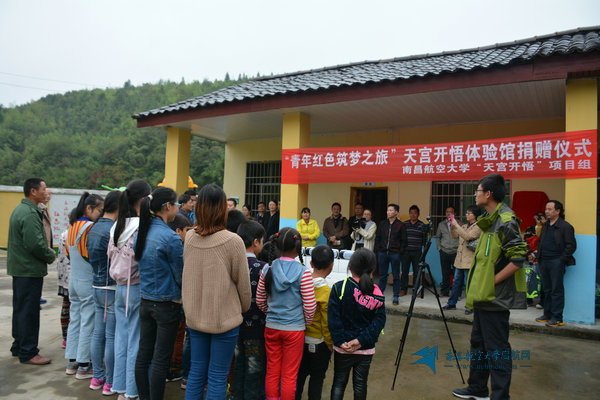作为此次扶贫日系列活动的内容,此前,艺术学院的30名师生还顶着烈日,利用两天时间完成了近200米长廊的墙绘活动,以扶贫攻坚、红色文化创城、移风易俗等为主题的墙绘,形成了茶园山村村容美化的靓丽风景。体育学院航模表演队在校团委组织下,前往茶园山村小学举行了航空文化进校园活动,为当地学生献上了精彩的航模飞行展示和航模制作讲解。