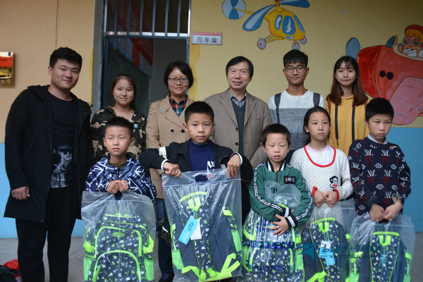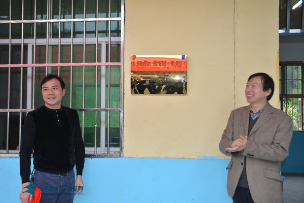 揭牌仪式后,黄士安一行徒步来到茶园山小学,慰问小学教师和贫困儿童,出席校团委“天工开悟”VR眼镜和经管学院文具用品捐赠仪式。“天工开悟”项目组师生为村小学的师生详细讲解了设备的使用情况,并就合作共建“天工开悟”馆达成初步意向,经管学院的学生向留守儿童代表赠送了文具用品,并结成了“一对一”帮扶结对。