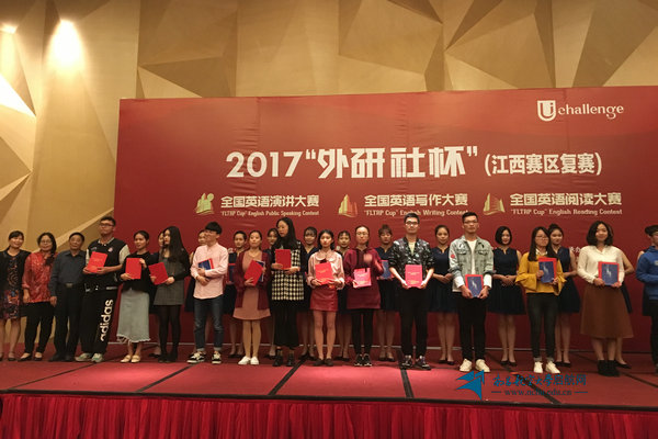 启航网讯 10月28日,2017年“外研社杯”全国英语演讲比赛、写作比赛与阅读比赛江西赛区总决赛在南昌大学共青学院举行。来自江西省40余所高校的600多名选手参加比赛。我校外国语学院共选派3个组共9名选手参赛。由徐翰老师带队,杨梅老师指导“阅读组”,徐筱秋老师指导“写作组”,贺菁老师指导“演讲组”,经过激烈角逐,9名参赛选手中有8人获奖,在全省高校中排名前列。