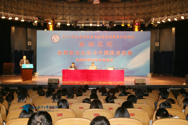 启航网讯 10月30日,2017年江西省社科普及宣传周暨学术活动周在南昌航空大学启动。省委宣传部副部长朱民安出席并宣布活动启动,省社联党组书记、主席吴永明主持启动仪式,中国社会科学院信息情报研究院院长、博士生导师张树华以《世界政治生态与中国政治发展》为题作首场报告。南昌航空大学党委书记郭杰忠、省社联党组成员、副主席杨宇军、省委宣传部理论处处长熊空军以及南航师生代表共300余人参加启动仪式。
