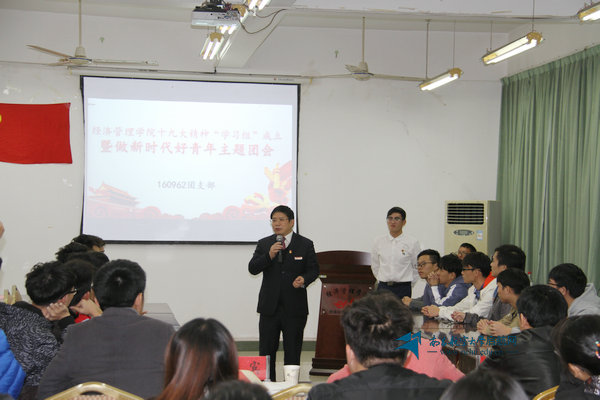 启航网讯 11月23日晚,党委书记郭杰忠来到联系的经管学院160962班团支部,参加该班级“习近平新时代中国特色社会主义思想'学习组'”成立暨“做新时代的好青年”主题团日活动。学工处、校团委、经济管理学院相关负责人、学院团委书记、班级班主任一同参加。学院团委学生会学生骨干,2016、2017级班级团支书观摩团会活动。