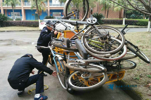 保卫处全体干部职工延长工作时间,将内勤和外勤人员重新整合分成三个小组,分别由三位处领导各带一个小组;将学校11个责任片区组合成三个大片区,由三个组分片包干,保证每个责任片区都有对应的处领导负责落实。召开了全处干部职工大会进行工作动员,在布置工作的同时,讲清整治的重要性,讲清职责要求,讲清执勤方法,讲清工作纪律。责任清晰明确、干部身先士卒带动了各组队员自觉服从安排,延长工作时间,保证了白天晚上执勤不脱节,违规情况有人管。在执勤中遇有少数违规车辆主人不理解、不配合的情况下,大家坚决顶住压力,严格执行学校规定,确保校园环境整治取得进一步实效。近期,保卫处已收扣乱停放共享单车1300余辆,清理出校园的共享单车、电动车有140余辆;收扣无牌摩托车9辆,清理废旧自行车350余辆,电动车5辆;增设非机动车停放指示牌33块,机动车停放指示牌22块;规划非机动车泊位56处,机动车泊位376个,增设规范停车石头隔离墩47个。