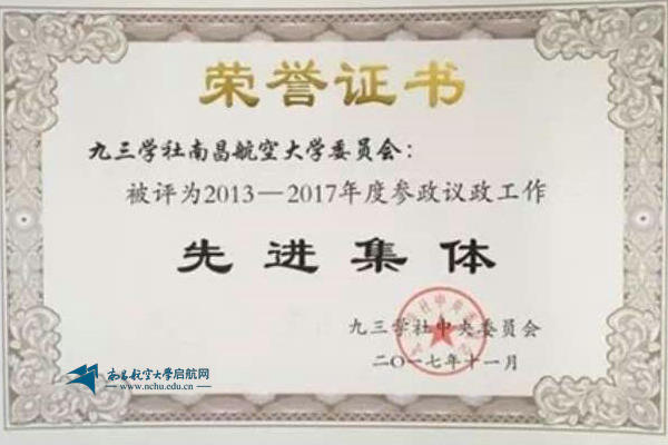 启航网讯 近日,在北京召开的九三学社十三届六中全会上,九三学社南昌航空大学委员会被九三学社中央评为“2013~2017年度参政议政工作先进集体”。江西省九三学社一起受表彰的共有4个市级组织和4个省直基层组织。
