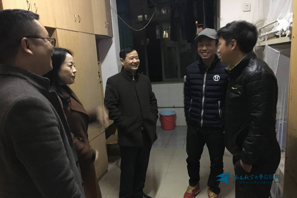 启航网讯 为了切实做好校领导联系班级工作,更进一步深入学生、关爱学生,校领导何兴道、熊震宇分别来到联系班级的宿舍进行走访慰问。