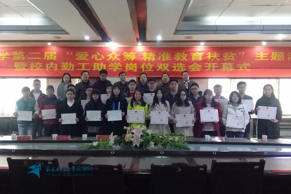 在双选会进行的同时,第二届“爱心众筹 精准教育扶贫”主题活动启动仪式在大学生活动中心213会议室举行。仪式上,学工部(处)、校团委和学院学生工作相关负责人为2016--2017学年国家奖学金获奖学生代表和2017年“助学•筑梦•铸人”主题征文获奖学生代表颁发证书。据悉,学校相关部门还将编印《南昌航空大学2016-2017学年国家奖学金获奖学生优秀事迹风采录》,广泛宣传36名国家奖学金获得者品学兼优、自强不息、知恩感恩的优秀事迹,讲好资助故事、传好资助声音、弘扬正能量。本次主题活动的开展,将进一步推动资助育人工作届次化、品牌化,提升大学生思想政治教育质量。