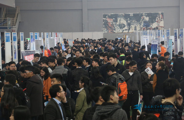 启航网讯 3月24日上午,2018届毕业生春季双选会在体训馆举行。186家用人单位参会。据统计,来校参会的有航空工业、中国航发、航天科技、航天科工、中船重工、中核、兵器集团、解放军维修厂等军工央企和空军海军企业,中国商飞、建材、电力、移动等非军工央企,以及国航、深航、东海航空、青岛航空等民航和通航企事业单位超过40家。省内大型知名企事业单位洪都,江铜,602所、江铃、泰豪、欧菲光也参加了本次双选会,提供招聘岗位近6000个。