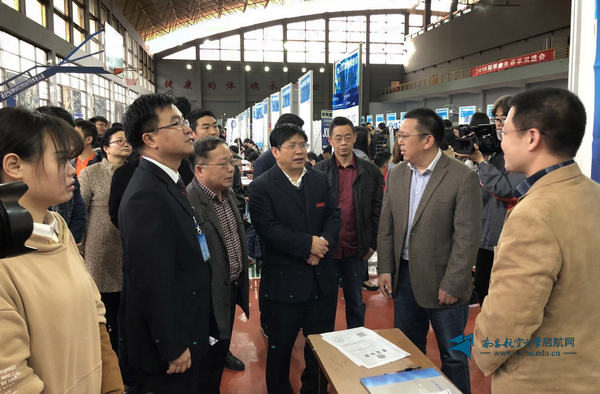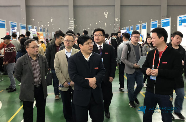 郭杰忠、何兴道及学校相关负责人在招聘会现场