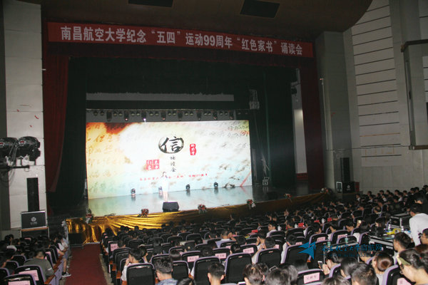 5月4日晚,学校在大学生活动中心礼堂举办以“信的力量”为主题的纪念“五四”运动99周年“红色家书”诵读会。学校党委书记郭杰忠,党委副书记黄士安,党政办、宣传部、学工部、校工会、校团委等部门负责人出席活动,与全校800青年师生代表共同聆听红色故事,品读书信中跨越时空的思想光辉,感受坚定理想信念的伟大力量。活动旨在大力弘扬爱国主义精神,教育引导“强国一代”的昌航青年传承红色基因、勇担复兴重任,创新发掘红色书信的深厚育人内涵,以红色文化与革命精神激励青年、感召青年、鼓舞青年。