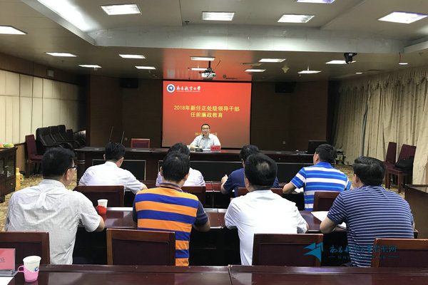 启航网讯 “一方面,去年省委巡视组反馈的问题中指出学校利用身边案件开展警示教育不够。另一方面,近年来查处的省内王詠、李贻煌等典型案件给了我们深刻的现实教训……”这是5月25日学校纪委书记顾有平正在给学校新任正处级领导干部开展任前廉政教育谈话,也是今年第2次任前廉政教育谈话。